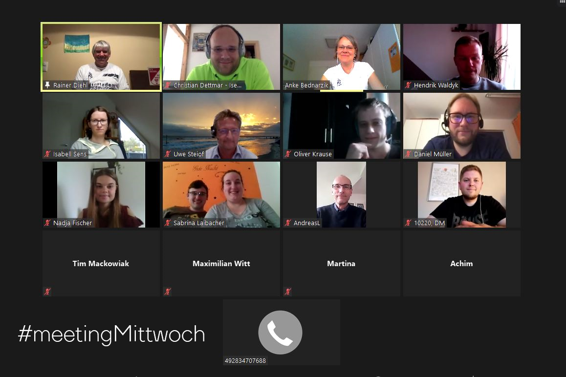 Letzen Mittwoch fiel der Startschuss für unsere neue "Online-Sprechstunde" #meetingMittwoch aus unserem Erfolgsprogramm #trotzdemBadminton. Ganz im Sinne eines "Meetings" führte Badminton NRW Referent Rainer Diehl mit einem Kurzebericht zu den neusten Mitgliederstatistiken gekonnt in das Thema "Mitgliederentwicklung im Coronajahr" ein und lud die insgesamt 19 (fast) durchweg jungen Vereinsvertreter*innen ein, ihre Lösungsansätze und -möglichkeiten im Badmintonsport während des Lockdowns miteinander zu teilen. Von einer App-Rallye, Online-Trainingsformaten, Federball-Schneemännern oder dem Training mit selbstgebauten Rola-Bolas war zu hören und jeder konnte sicherlich ein paar Anregungen für die "harte" Zeit seines Verein mitnehmen.
