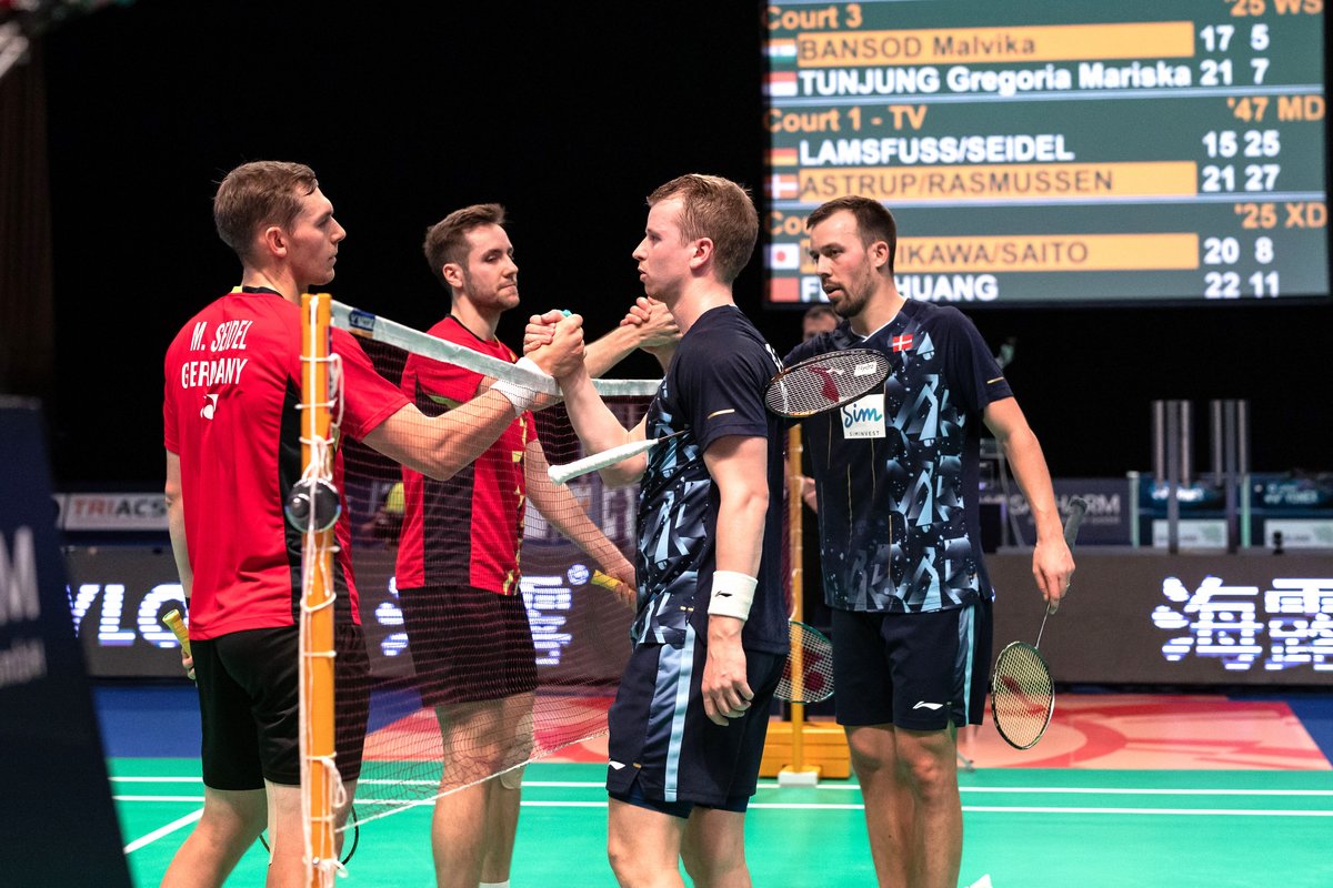 Die Begegnungen von Mark Lamsfuß/Marvin Seidel (beide 1. BC Wipperfeld) mit Kim Astrup/Anders Skaarup Rasmussen gestalten sich traditionell ebenso hochklassig wie eng. So auch bei den HYLO Open (1. bis 6. November 2022 in Saarbrücken), bei denen die amtierenden Europameister aus Deutschland im Viertelfinale am Freitag (4. November 2022) zum insgesamt 13. Mal in ihrer Karriere auf die Dänen trafen. Letztlich mussten sich die Weltranglistenelften (Setzplatz 5) bei ihrem Heimturnier dem in der Weltrangliste derzeit am besten platzierten europäischen Herrendoppel (Setzplatz 2) nach einer Spielzeit von 48 Minuten mit 15:21, 25:27 geschlagen geben. Dabei gelang es den im Ranking des Badminton-Weltverbandes BWF siebtplatzierten Nordeuropäern, im zweiten Durchgang zwei Satzbälle der Lokalmatadore abzuwehren. Im direkten Vergleich führen die Europameister von 2018 nun mit 10:3.