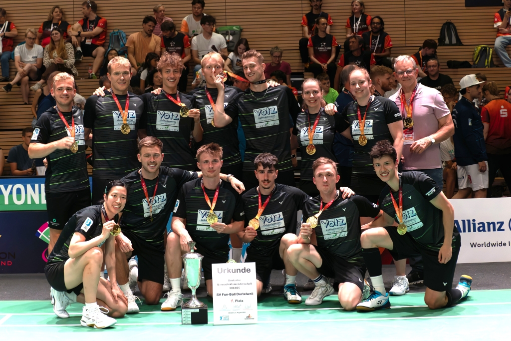 Es war eine klare Angelegenheit: Der SV Fun-Ball Dortelweil schlägt im Finale der Badminton-Bundesliga den Herausforderer Blau-Weiss Wittorf Neumünster mit 4:0 – und feiert damit die zweite Meisterschaft der Vereinsgeschichte nach 2024.