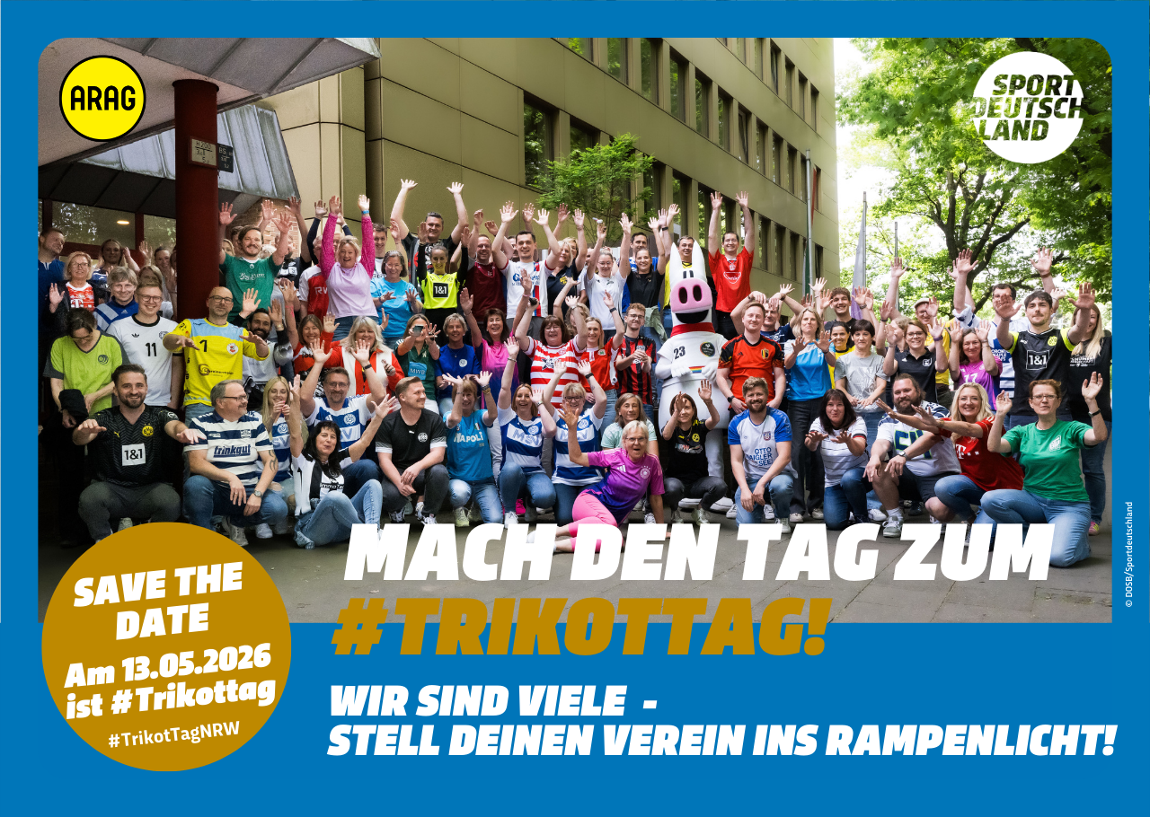 Am 13. Mai 2026 wird wieder Trikottag gefeiert – der Tag, an dem ganz Deutschland seine Vereinsvielfalt sichtbar macht! Alle Vereinsmitglieder sind herzlich eingeladen, ihr Trikot, ihr Vereinsshirt oder ihren Vereinsanzug zu tragen und damit stolz zu zeigen, zu welchem Verein sie gehören. Ob auf der Arbeit, in der Schule oder unterwegs: Lasst euren Verein strahlen!