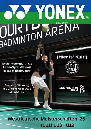 | Meldung höhere Altersklasse: Antrag Wildcard: Meldeschluss: Auslosung: | Mittwoch, 27.08.2025 (Termin direkt nach den Sommerferien!) Mittwoch, 03.09.2025 Mittwoch, 29.10.2025 Freitag, 07.11.2025 | |